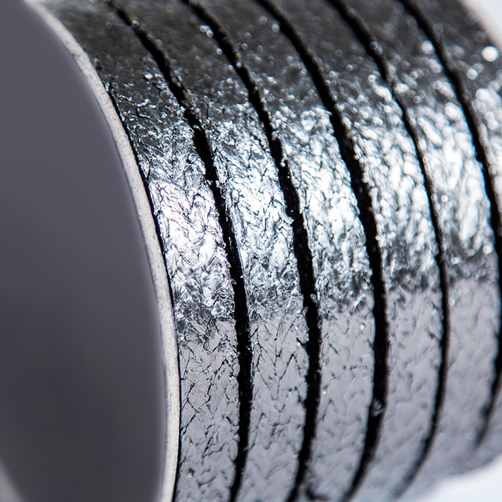 Esta empaquetadura trenzada elaborada con filamentos de grafito y posteriormente impregnados con lubricantes especiales, posteriormente tratados con grafito puro de alta calidad formando una película para evitar ralladuras y ademas en un bloqueador para las flechas. Temperatura máxima 600°. especial para controlar fugas; se usa en calderas,suministros y re circulación de enjuagues de filtros de alta densidad, se recomienda para manejar álcalis,aire ácidos débiles y gases industriales secos; aceite mineral,vapor y soluciones salinas.