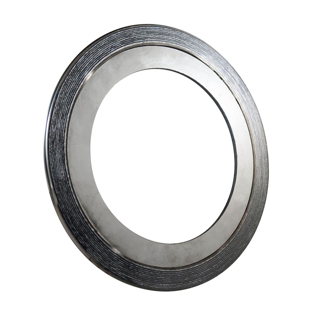 Esta pieza consta de un anillo exterior que centra la junta perfectamente en la cara de la brida, proporciona un refuerzo adicional radial para evitar que la junta reviente y actúa como limitador de compresión. Se trata de una junta de uso general adecuada para utilizarlas con bridas de cara plana y con resalte, hasta clase 2500 se recomienda un anillo interior.